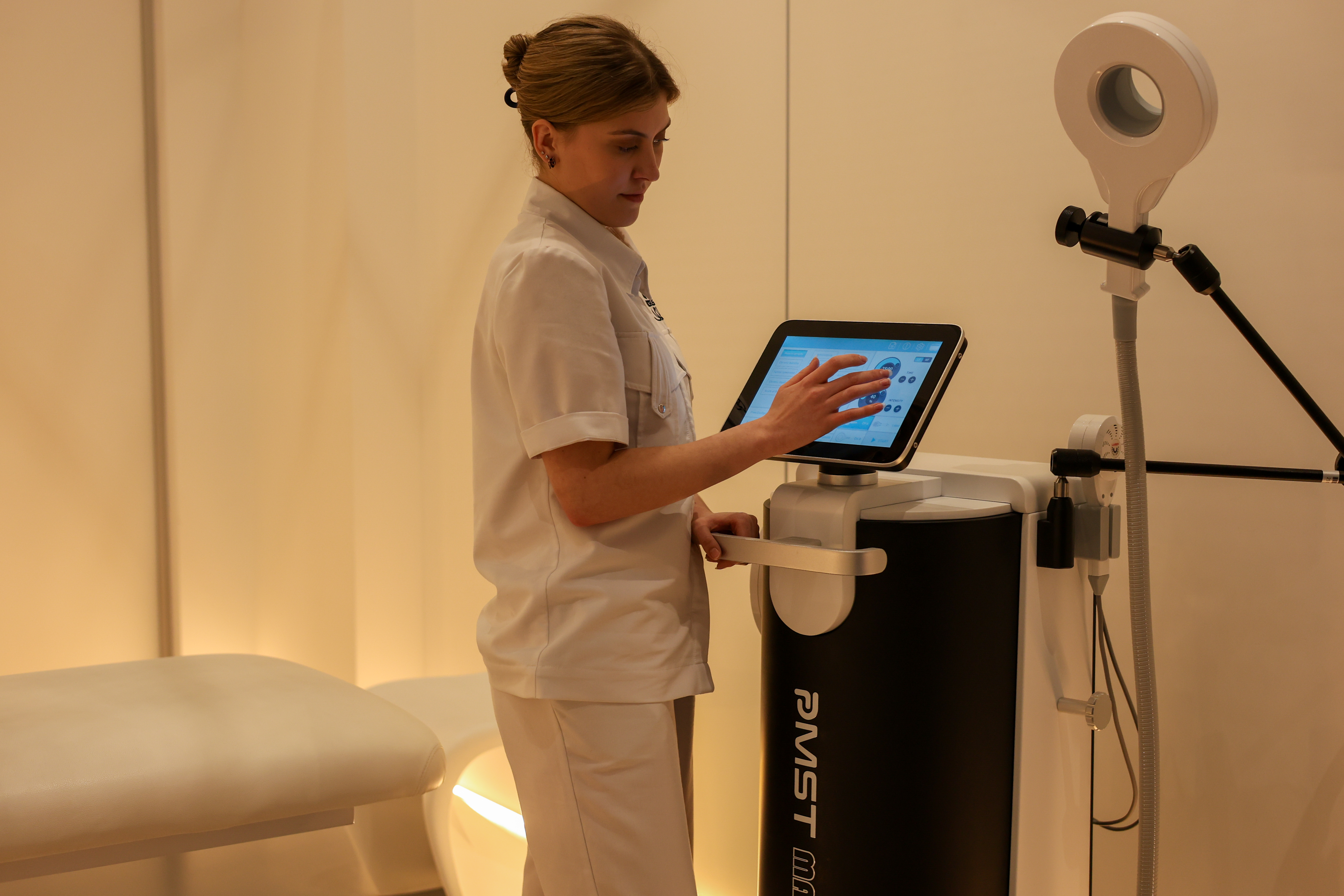 У Medeus ми використовуємо PMST MAX для глибокого впливу на м’язи, суглоби та зв’язки. Потужне магнітне поле проникає до 18 см углиб тканин, активуючи природні відновлювальні процеси організму — без контакту зі шкірою та без неприємних відчуттів.